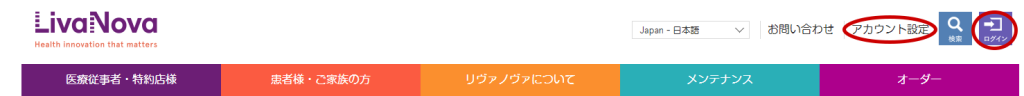 1) TOP画面右上の「アカウント設定」もしくは「ログイン」ボタンをクリックします。