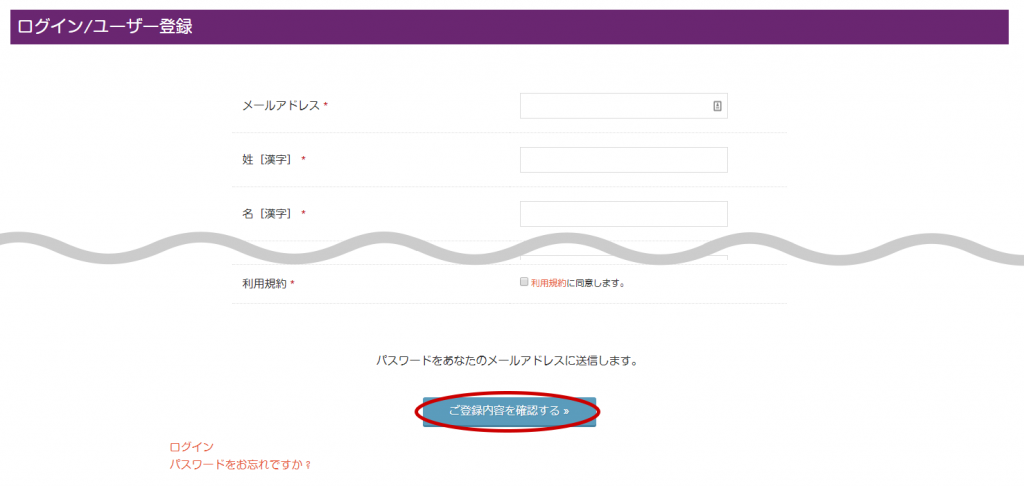 入力が完了しましたら、「ご登録内容を確認する」ボタンをクリックします。