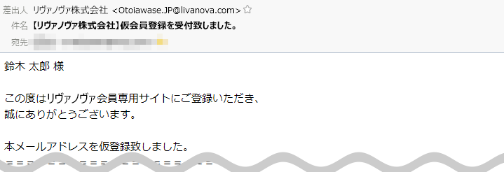 6) ご登録いただいたメールアドレス宛てに、仮会員登録受付メールが届きます。